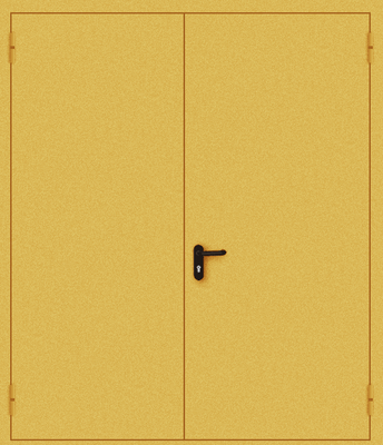 - Глухие двупольные огнестойкие двери состоят из коробки, двух полотен, внутренних наполнителей, деталей фурнитуры. Размеры зависят от места монтажа. Чаще всего их устанавливают на запасном эвакуационном входе, лестничной клетке, лифте, тамбуре. Поэтому конструкция имеет нестандартные параметры.
